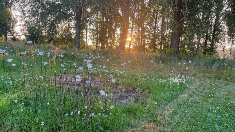 When it came to 21st June, the longest day of the year, Midsummer’s Day proper, Susanna was determined to get the most out of it. She therefore rose at 3 a.m. to hike through the countryside, see the sunrise and experience the full magic of daybreak. Wild boars scuttled away seeking the cover of the forest and the little roe deer sprang over the roads and verges. Just before 5 a.m. she returned home, briefly went back to bed and then got up again to bake a sponge cake since strawberry cake with cream is all part of the tradition (as is pickled herring but we chose to skip that part!).