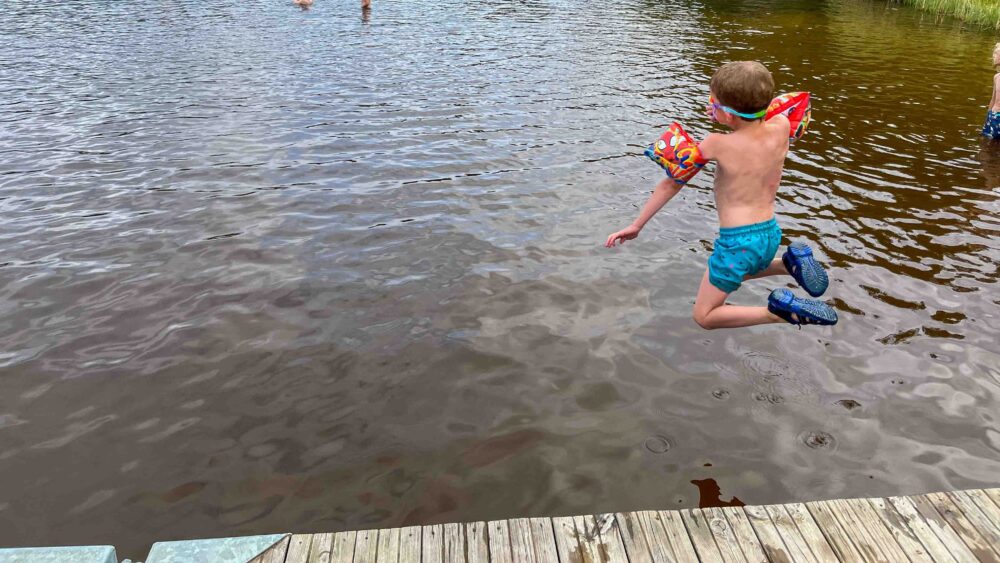 Returning to the house in Sweden felt like a homecoming. It was super to unwind after the two rather hectic weeks behind us. By now Rune is getting very excited at the prospect of moving back to the Netherlands. By contrast, we notice that at this stage in his life Vidar is pretty flexible about things. At the same time they both separately admitted, within a mere day of being back, that they feel happy here. Both boys intantly became involved in all the gardening activities and we immediately started swimming again in our favourite lake. On the second morning back in Sweden Rune suddenly found himself standing eye to eye with a roe deer grazing just a metre away from the house. For his part, Vidar burst into song in Swedish whilst gathering blueberries in the wood with his mother. Such total immersion (as soon as we got back) into the simple yet impressive natural environment all around us is thus something that they, too, have come to appreciate.
